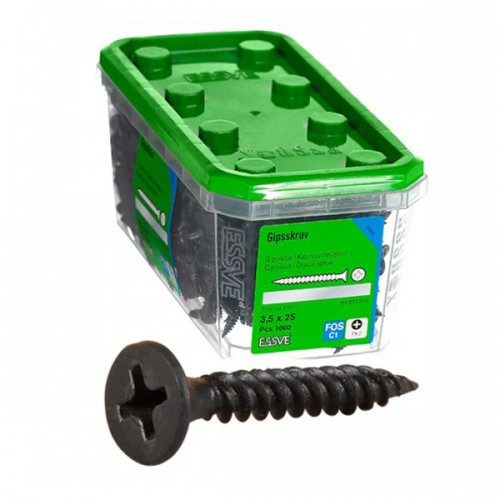 Саморізи ESSVE для гіпсокартону по металу 3,5*25, фосфат. PH2 (1000 шт/уп).